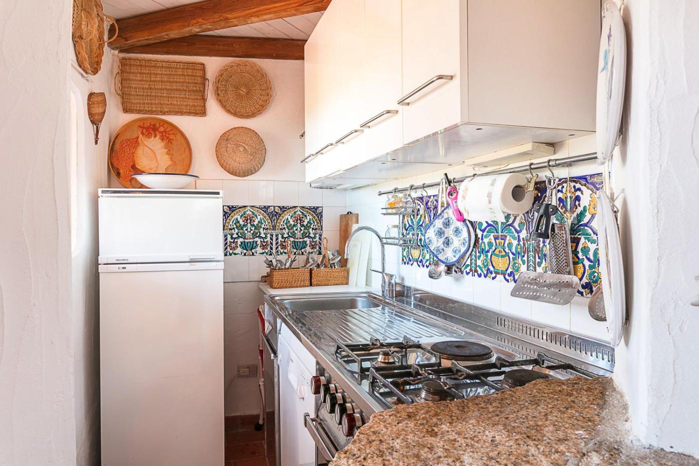 Questa casa vacanze comprende 2 camere da letto, 1 bagno, lenzuola, asciugamani, una TV, una cucina con utensili e una terrazza con la vista sul mare.