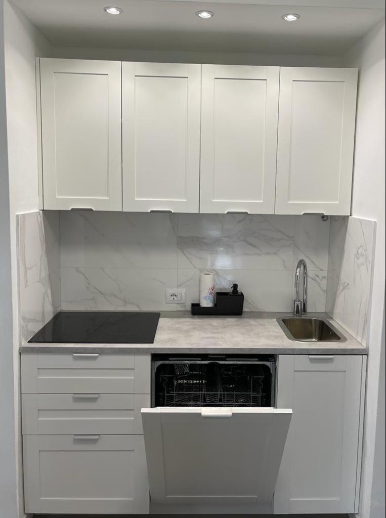 Questo appartamento ha una TV a schermo piatto. La cucina comprende frigorifero, lavastoviglie e microonde più macchina da caffè.