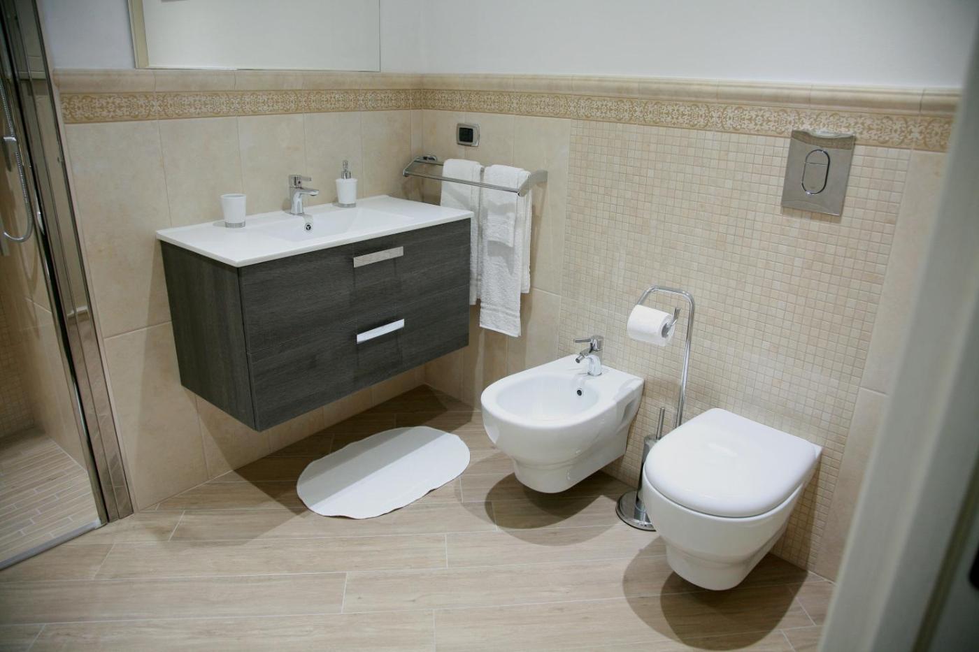 Monolocale. Guests can make meals in the kitchenette that is fitted with a stovetop, a refrigerator and kitchenware. This air-conditioned studio is comprised of a flat-screen TV with satellite channels, a private bathroom as well as a balcony with city views. The unit has 1 bed.