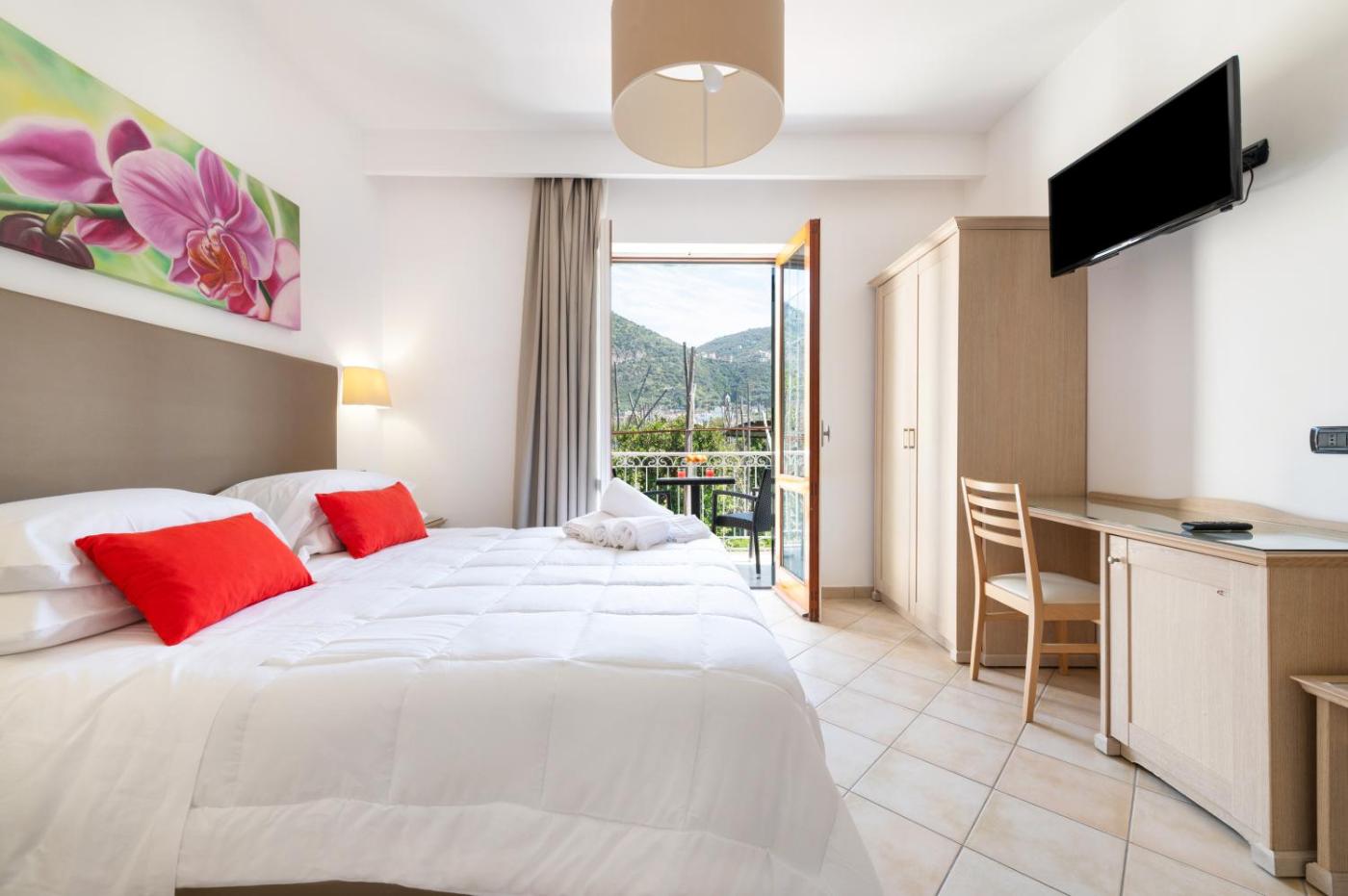 Camera Matrimoniale Deluxe con Balcone. Camera matrimoniale climatizzata e dotata di TV satellitare a schermo piatto, bagno privato e terrazza con vista sul giardino. L’alloggio presenta 1 letto. ;