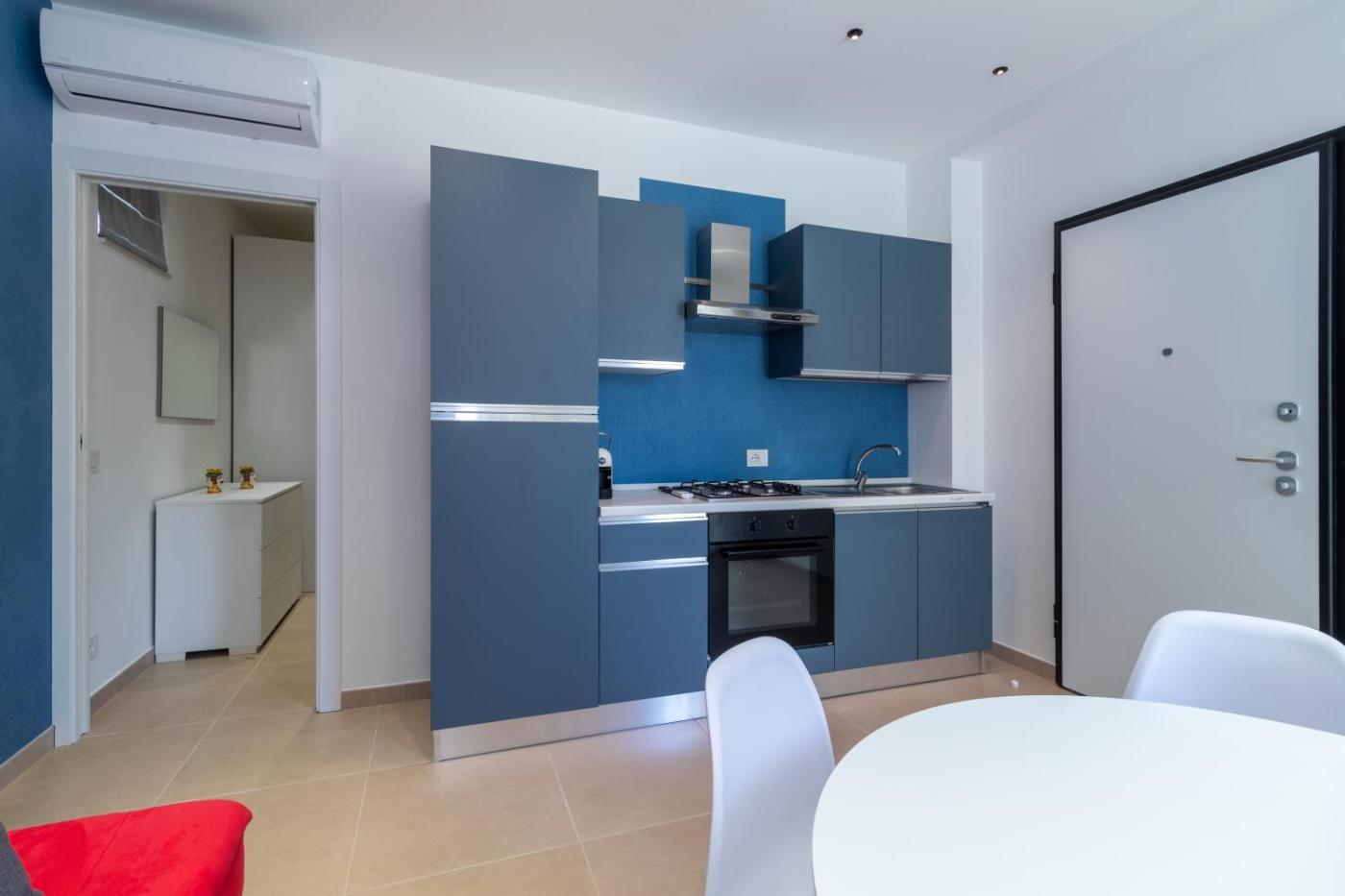 Questo appartamento con aria condizionata comprende 1 camera da letto, un soggiorno, una cucina con utensili, forno e macchina da caffè, e 1 bagno con doccia edi cortesia. Presso questo appartamento troverete asciugamani e lenzuola a disposizione.